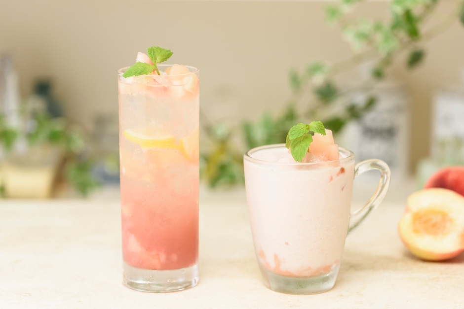 どちらも濃厚なピーチネクターをベースにした、サマーシーズンにぴったりのオリジナルドリンクです。