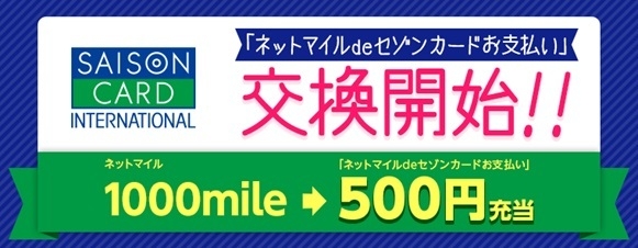 交換レート: ネットマイル1,000mile→「ネットマイルdeセゾンカードお支払い」500円