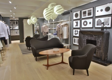 店内の随所にみられる北欧インテリアたちは、それぞれが持ち合わるヴィンテージ要素とコンテンポラリーなデザインが見事に調和しており、どのディテールにもファビアナ フィリッピのコレクションを彷彿させる美的センスやエレガントさが感じられます。