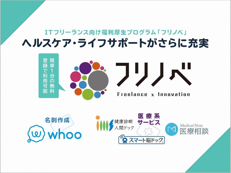 ITフリーランス向け福利厚生プログラム「フリノベ」 スマート脳ドック・メディカルノート・名刺作成whooなど4社と提携 ヘルスケア・ライフサポートがさらに充実!