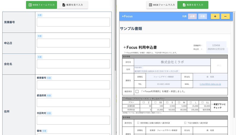 内閣官房マイナンバーシステムの電子AI申請技術を開発する株式会社ミラボ(所在地:東京都千代田区、代表取締役:谷川一也 以下、ミラボ)は、「紙帳票の電子化」「紙帳票とWEBの併用」を実現するAI電子申請ソリューションの民生版『+Focus(プラスフォーカス)』をリリース致しました。
