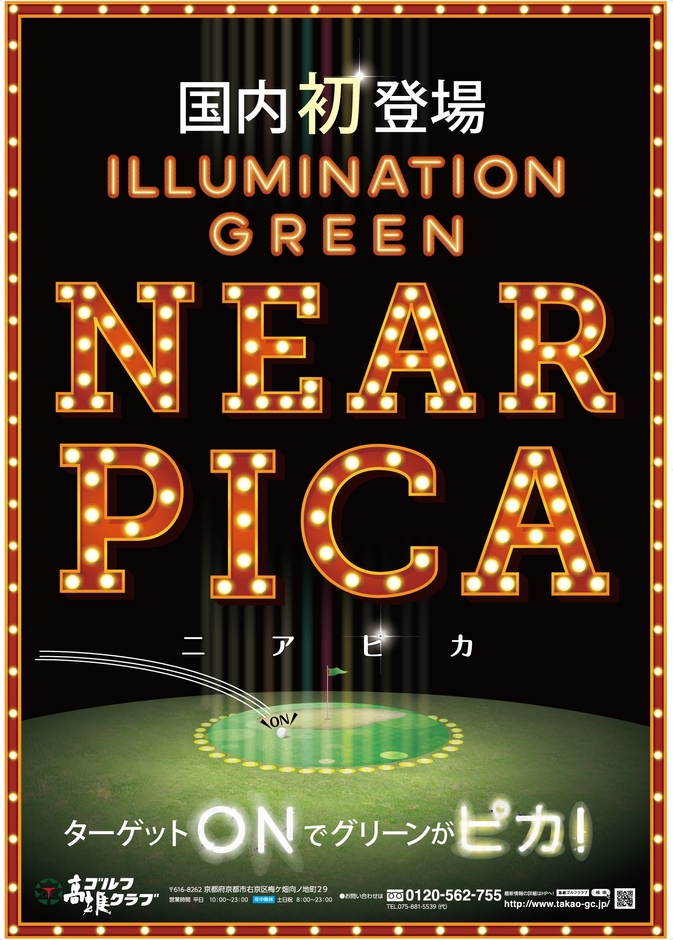 京都市でゴルフ練習場を運営する株式会社高雄ゴルフクラブ(所在地:京都市右京区、代表取締役 小林 行雄)は、4月27日(土)より、国内初となるLEDグリーン「ニアピカ」を始動いたします。あわせて条件を満たすとチャレンジしたお客様全員に50球サービス券を進呈する「ニアピカチャレンジ」を開催いたします。