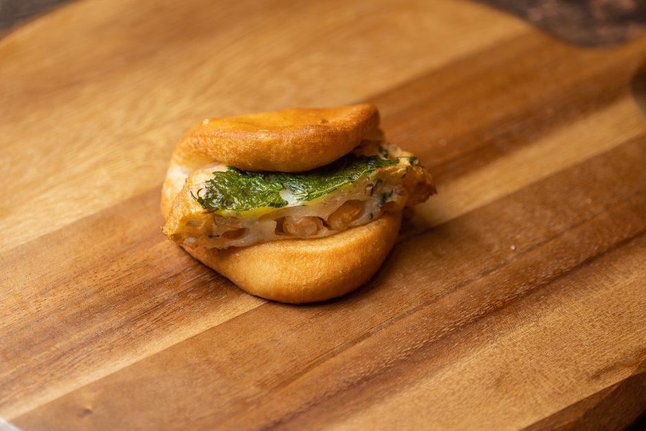 えびしそレンコン天の食感と味を活かすためにシンプルなパン生地にはさみました。パン生地には『ゆめちから』と『きたほなみ』の二種類の小麦を使用しています。今までに味わったことのない新しいかまぼこの食べ方をお楽しみください。