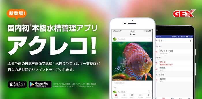 アクアリウム業界最大手のGEXより国内初の水槽管理のアプリが登場!