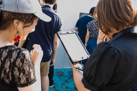 最大4人1組で、タブレット端末を持ってゲームに挑戦します。