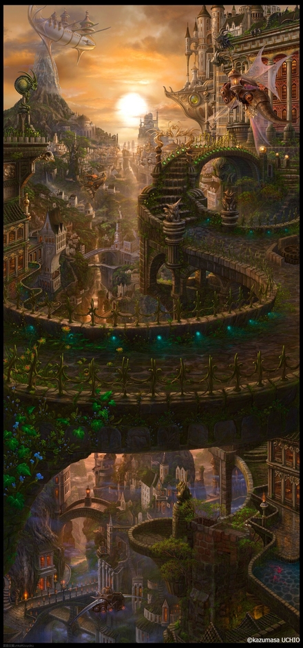 内尾氏は、若干21歳でフリーのイラストレーターとして独立、CGイラストの先駆者として数々の賞を受賞し、映画版ファイナルファンタジーではマットペイント・コンセプトアートを制作、その後も多くのファンタジーゲームで背景画やコンセプトアート制作に携わり幻想的な世界を生み出してきました。2003年からは画家としても活動を開始し、確かな技術で繊細かつ緻密に描かれる独創的な世界観は見る者を魅了し続けています。