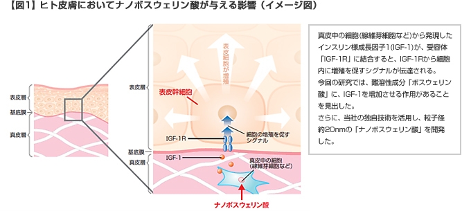 成長因子「IGF-1」(*1)が、表皮幹細胞(*2)を活性化させることを確認 IGF-1の増加を促す独自成分「ナノボスウェリン酸」を新開発