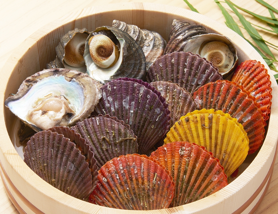 サザエは網焼き(つぼ焼き)、炊き込みご飯に最適。ヒオウギ貝も網焼き、バター焼きなどの食べ方がおすすめ。真珠貝(アコヤ貝)は白ワインやニンニク、パセリなどで調理しお召し上がりいただけます。