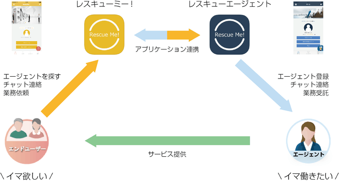 「レスキューミー!」はスマートフォンを利用して、現代の多種多様なライフスタイルに合わせて必要なときに必要なサービスを必要な場所で提供するアプリケーションです。アプリケーション上では、スマートフォンならではの直観的な操作、リアルタイムチャット機能やGPS機能により、特定のスキルを持つレスキューエージェントと特定のサービスを求めるユーザーをシームレスにマッチングいたします。ユーザーとサービス提供者であるレスキューエージェントを直接結びつけることにより、中間マージンを排除し、ユーザー側には安価に、レスキューエージェント側には高単価なサービスとなり、お互いにWin-Winの関係が構築できます。そこで、アプリケーションのリリースに伴い、様々なスキルを持ったレスキューエージェントの募集を開始いたします。