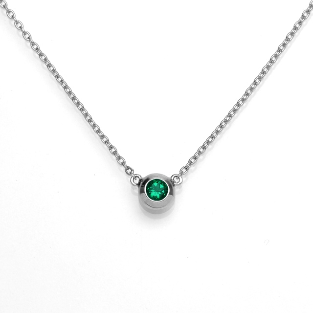 良質のラウンドエメラルド0.08ctをあしらったシンプルネックレス。