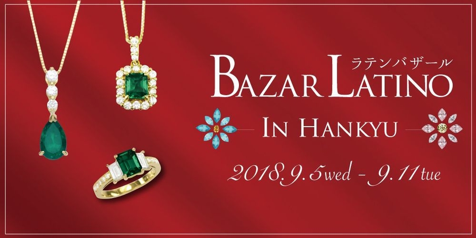 エメラルドジュエリー専門店ユアエメラルド(運営:ジュエリーガーデン株式会社、所在地:兵庫県神戸市、代表取締役:田崎 昭紀)は、2018年9月5日(水)~11日(火)の7日間、阪急うめだ本店9階催情(所在地:大阪府大阪市)にて開催される「ラテンバザール」に出展いたします。