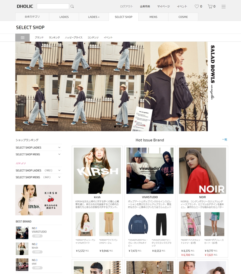 韓国デザイナーブランド「SELECT SHOP」(DHOLICサイト内)