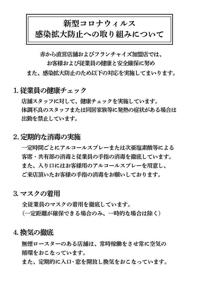 【「赤から」の新型コロナウイルス感染対策について】(全店舗共通)
