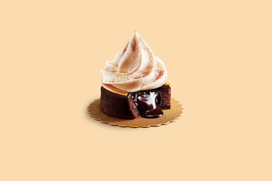 ほんのり温かいとろける“ショコラ”と、ひんやり「ソフトクリーム バニラ」のハーモニーを楽しむ「フォンダンショコラ」は、2013年から販売する秋冬限定の人気スイーツです。