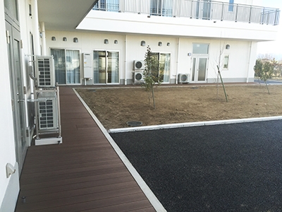 【納入事例レポート】あ、ここにも杉田エース!Vol.196埼玉県児玉郡に新築した特別養護老人ホームの2階バルコニーと1階の屋外廊下にエス・ウッド デッキを納入させていただきました。