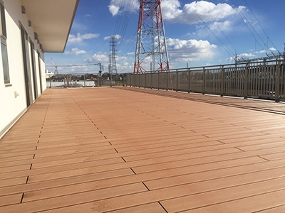 今回ご発注いただいたのは、お取引先の現場金物店様です。上里町に、特別養護老人ホームが建築される情報を聞き、弊社よりぜひ建材を仕入れていただきたいと販売店回りしていました。そこで出てきた話がデッキ材だったのです。2階のバルコニーと1階の屋外に作る廊下のようなスペースに再生木材を使用する計画でした。