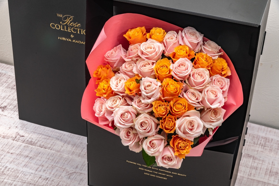 スペシャルボックスフラワー「ローズミックス」は、日本最大の湖・琵琶湖のそばに位置する滋賀県守山市で、55年以上にわたってバラ農園を運営する國枝バラ園が生産するバラを、高級感引き立てる日比谷花壇オリジナルのスペシャルボックスでお届けします。國枝バラ園が自信を持って育てた、花弁が美しく咲き開くこだわりのバラ。今年の日比谷花壇の母の日のメインテーマである「ありがとう」にちなみ、優しさをまとった淡いピンクと元気をもらえるオレンジの大輪バラ39(サンキュー)本を贅沢に束ねました。スペシャルボックスを開けると、“花の女王”と呼ばれるにふさわしい魅力にあふれたバラの花束が現れ、特別な瞬間と感動をもたらします。