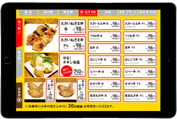 Okage株式会社(所在地:東京都中央区、代表取締役:内田 善久)のセルフオーダーシステム「オーダーブック」、モバイルPOSシステム「Okageレジ」が、ユナイテッド&コレクティブ株式会社(所在地:東京都港区、代表取締役:坂井 英也)が運営する新業態「鳥料理が安いだけの店 やるじゃない!」高円寺駅北口店、田町店に導入されました。