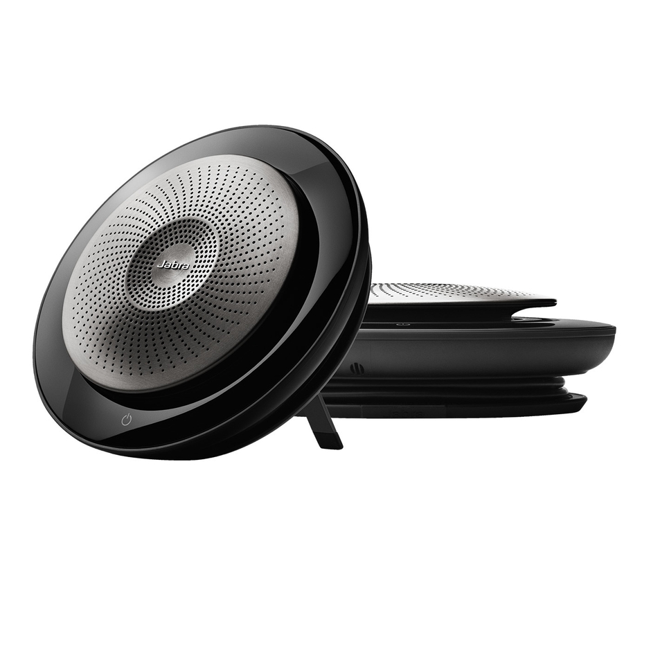 調査によると、スピーカーフォンの接続や設定に手こずり、ミーティング時間の約15%が「準備」に費やされていることがわかりました。その最も多い問題の1つは音質の低下です(※1)。Jabra SPEAK 710+は、あらゆる種類のデバイスで利用することができ、高品質の音を提供できます。そして、ダイヤルパッドソリューションの必要性がなくなるので、従来のようなハードウェアベースの電話ミーティングとは一線を画しています。さらに、持ち運びしやすいコンパクトなデザインで、付属の折りたたみ式スタンドを使用することで様々な用途に対応可能です。USBやBluetooth経由でPCやスマートフォンに瞬時に接続できるだけでなく、2台を最大30m離して使用することができます。(PCとUSB接続する場合は、ケーブル分の約1m)
