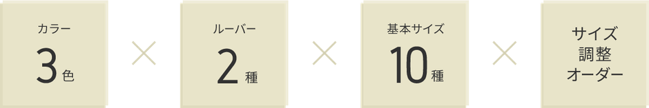 カラ-は3色、ルーバーのタイプは2種類、基本サイズが10種類あり、サイズ指定を選ぶだけの簡単オーダー!