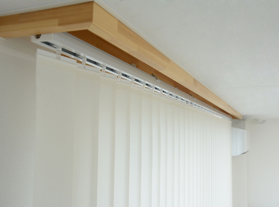 ■縦型ブラインド「バーチカルブラインド」はルーバー(ブラインドの羽根の部分)と呼ばれる布地を縦方向に並べたブラインドです。