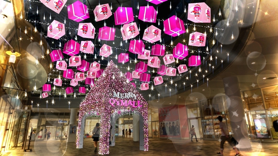 <キューズモールのイルミネーション> プレゼントボックスで装飾されたツリーやプロジェクションマッピングなど 2018年11月1日(木)より順次開催