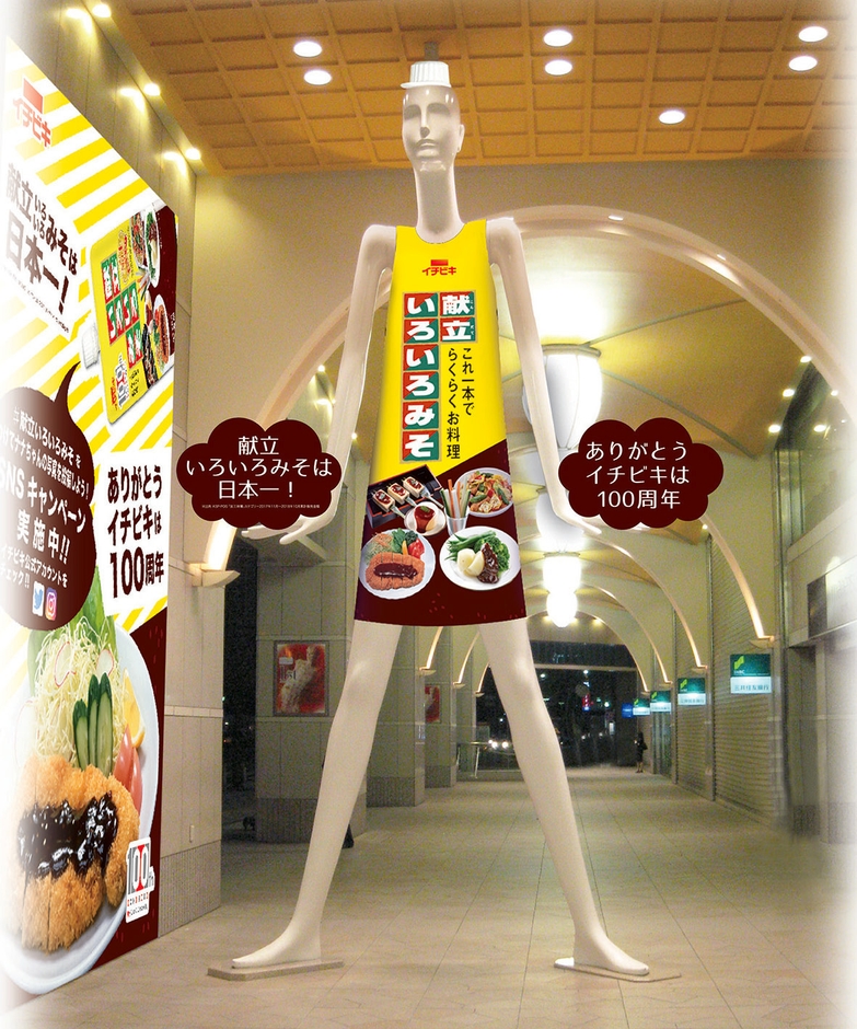 イチビキ株式会社(本社:愛知県名古屋市、代表取締役社長:中村 光一郎)は、100周年記念事業の一環として、8月14日(水)から20日(火)まで、名古屋のシンボルである巨大マネキン「ナナちゃん人形」を「献立いろいろみそ」仕様のワンピース姿に変身させます。