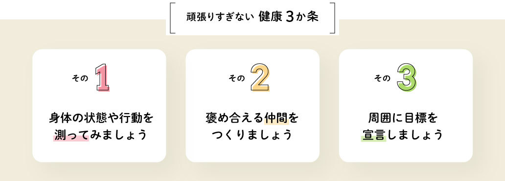 無理なくできる、生活習慣改善のための3か条。まずは自分自身を「測ってみる」ことが大切です。