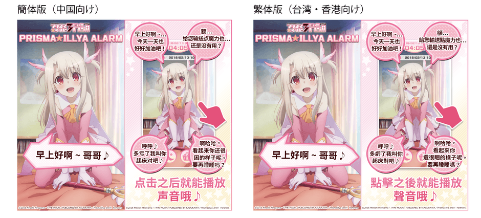 『プリズマ☆イリヤ アラーム』中国語版ローカライズ配信開始!