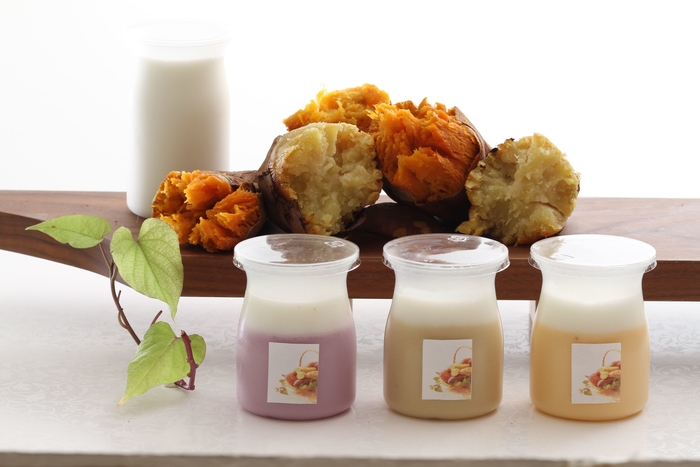 150品種のカラー芋の中から選ばれた「紅はやと」と「紅はるか」の二種類を蜜のしたたる完熟焼芋にして、乳製品と融合させた『熟し芋』。