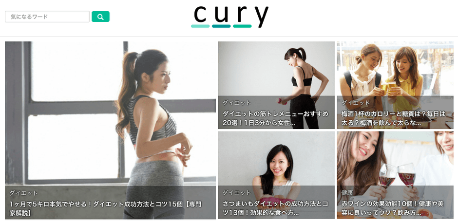 Curyは、ダイエット・フィットネスなど、健康維持・健康予防に役立つ情報を扱うWEBメディアです。今後はダイエット・フィットネスだけでなく、食事、スポーツ・美容などのコンテンツを拡大していきます。