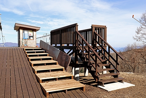 さらに、ロマンスリフトの終着点であるロマンスコース山頂には「富士山展望デッキ」が設置され、標高1,480mから世界遺産富士山や眼下には河口湖や樹海が広がる美しい冬景色をご覧頂けます。富士山展望デッキはスキー・スノーボードの途中に立ち寄る利用客だけでなく、スキーやスノーボードをしない方もリフトをご利用頂けます。