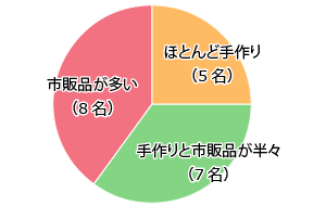 今年のお正月に「おせち料理」をどのように準備したかを尋ねたところ、「ほとんど手作り」は全体の4分1にとどまり、「市販品」の利用が目立ちました(図1)。