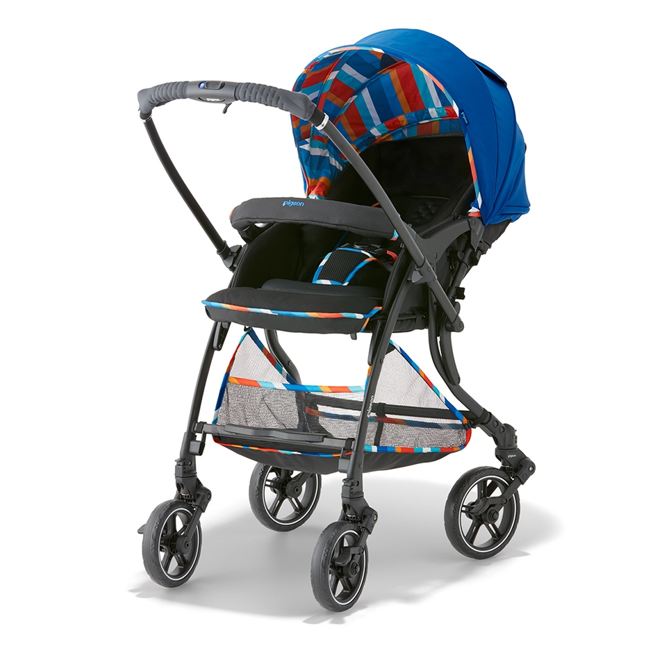 こうしたママの悩みに応えるべく、新しいRunfeeは対面時の前輪のタイヤを18.0cmに大径化し、フレーム構造を改良、ハンドルに工夫を加えることで、段差の乗り越え性を向上させ、対面走行時の押しやすさが進化しました。