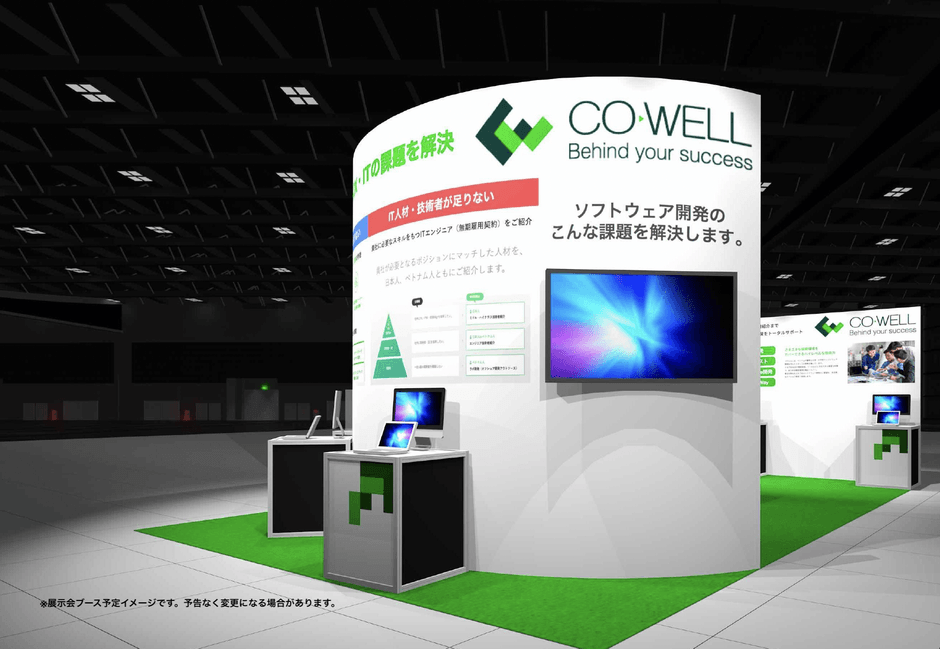 そうした背景を受け、今回の出展では「人材課題」「技術課題」「品質課題」の3つの側面からコウェルのサービスをご紹介するとともに、ゆったりとしたスペースで、お客様の課題を解決してきた当社コンサルタントに直接相談できる無料相談会を展開いたします。