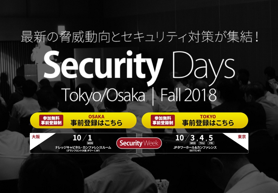JPタワーホール&カンファレンス(JPタワー・KITTE4F)にて 「Security Days Tokyo | Fall 2018」2018年10月3日(水)~4日(木)