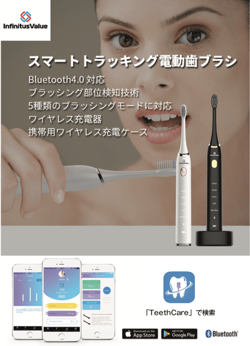 株式会社インフィニタス・バリュー(本社:神奈川県川崎市、代表:田村 浩)は、スマホと連携できるスマートトラッキング電動歯ブラシを2018年9月10日(月)に発売します。