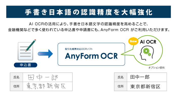 この度、誰でも簡単に帳票のデータ化が行えるOCRソフト「AnyForm OCR」のVer5.2にて、手書き日本語文字を高精度に認識するAI OCRエンジンをご提供することになりました。