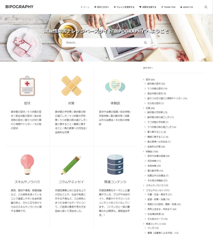 当事者の手で作る双極性障害ナレッジベースサイト『BIPOGRAPHY』(バイポグラフィー)は、2018年6月24日で開設6ヶ月を迎えます。6月1日現在で情報提供者66名、投稿数313件、プロジェクトメンバーは3名となり、今後も情報の質と量の更なる充実と認知度向上を図ります。
