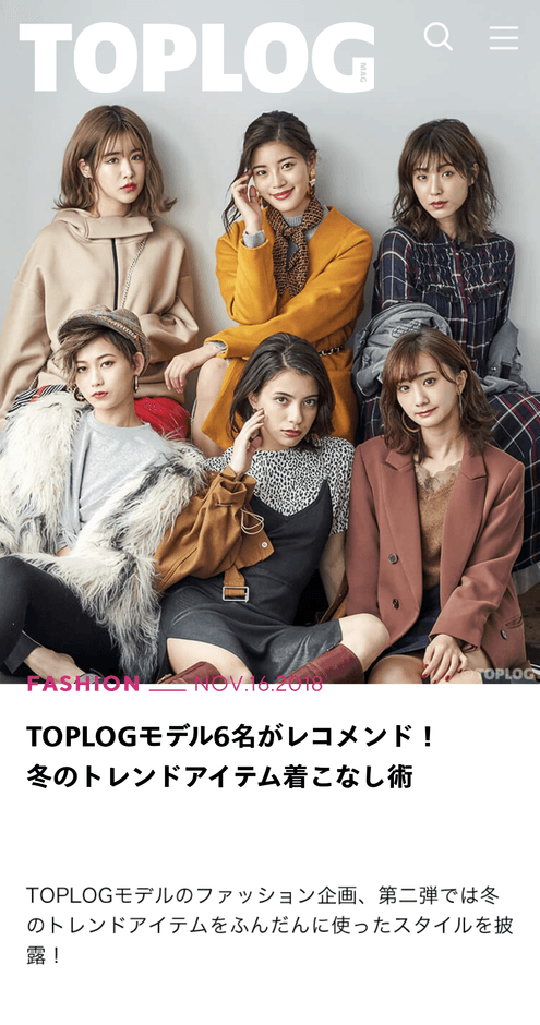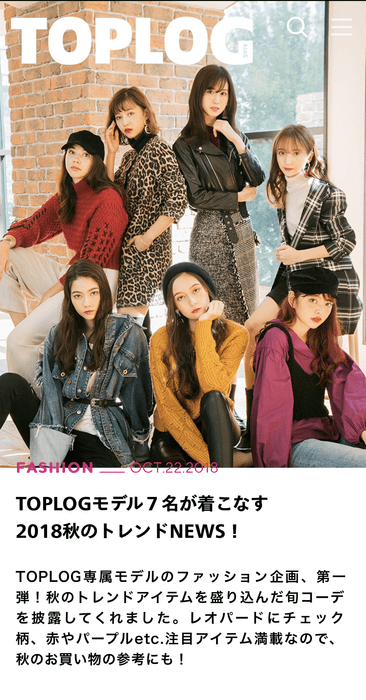 株式会社TOPLOG(本社:東京都目黒区、代表取締役:亀山隆広)が運営するファッションWEBマガジン「TOPLOG(トップログ)」(以下、TOPLOG)が、モデルやインフルエンサーとして活躍中の14名をTOPLOGの専属モデルとして起用いたしました。