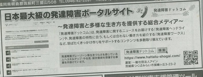 【メディア掲載】発達障害ドットコムが西日本新聞朝刊に掲載されました。