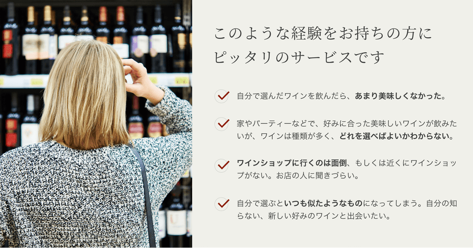 ・ワインショップに行くのは面倒、もしくは近くにワインショップがない。お店の人に聞きづらい。