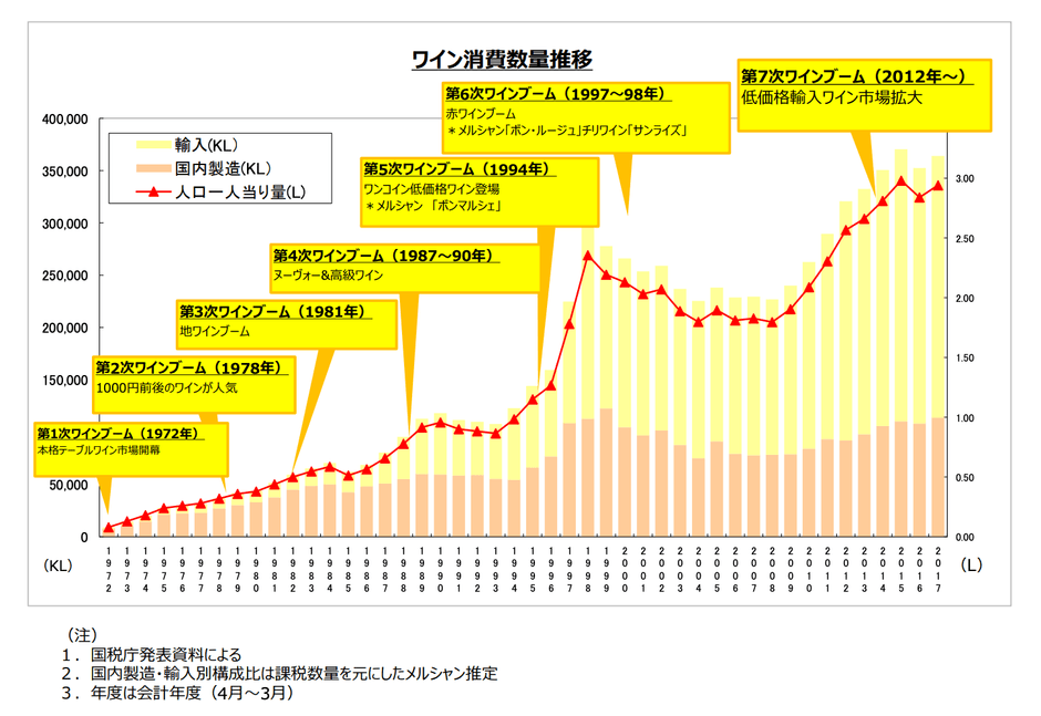 ワイン参考資料 メルシャン株式会社 「ワイン消費数量推移」