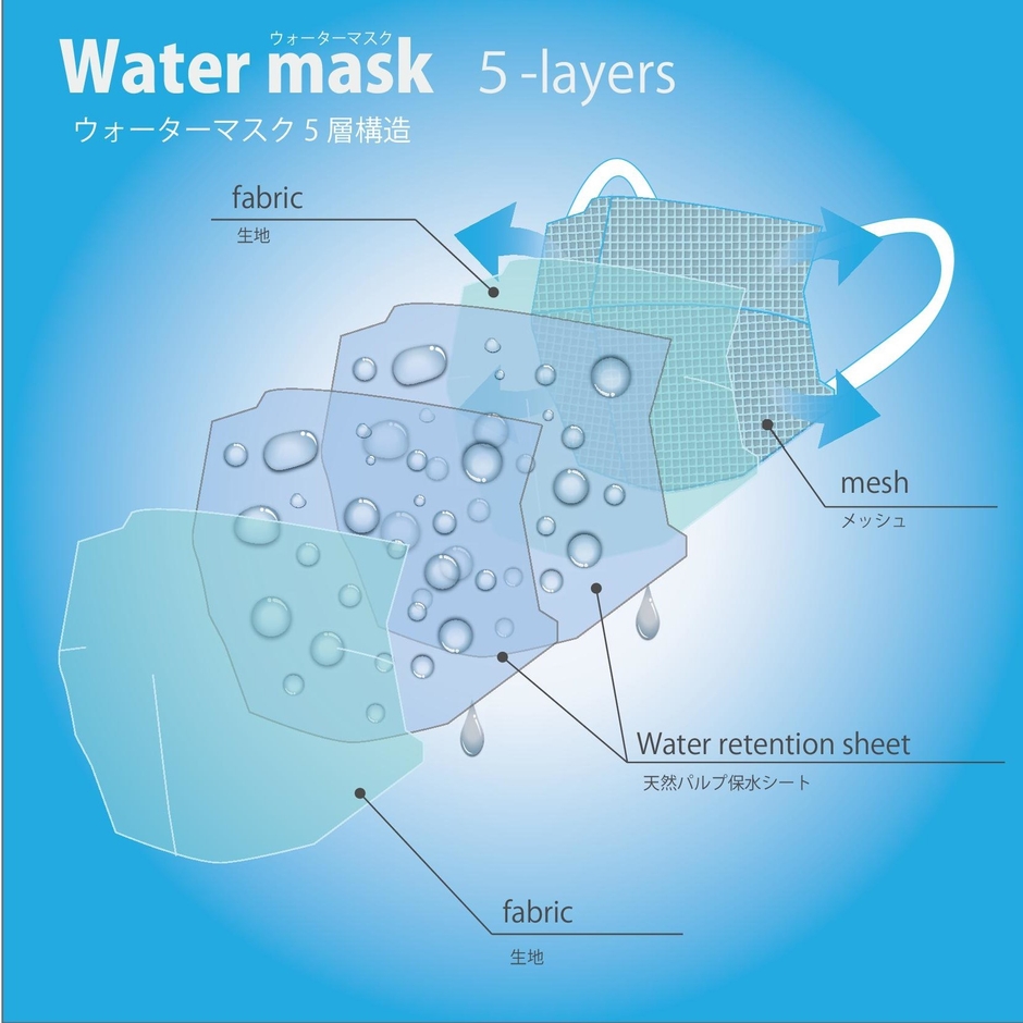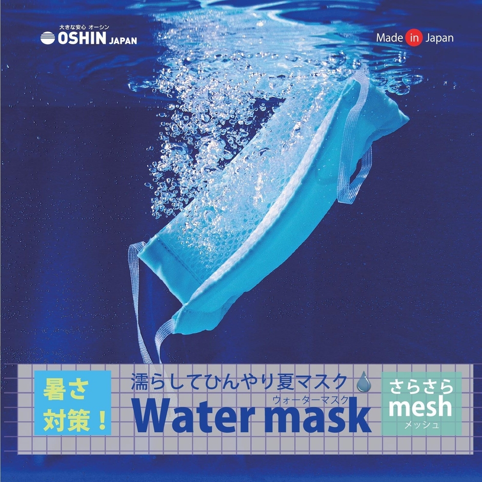 寝具・メディカル部門を持つメーカー株式会社オーシン(創業:133年、所在地:福井県越前市、代表取締役社長:渡辺 哲広)は2020年5月、暑さ対策として水で濡らして使用する「ウォーターマスク」の販売を開始しました。水分が蒸発する際周囲の熱を奪う気化冷却効果で口元がひんやり快適で繰り返し使用できます。