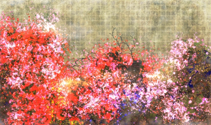 この花々は、人々が描くことによって、生まれ、咲き、散って死んでいく。散っていくときに、花びらの軌跡によって、花自身も新たに線を描いていく。