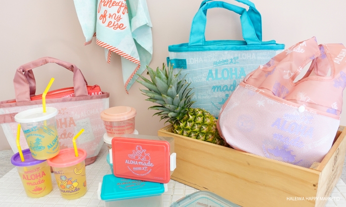 ハワイらしいカラフルなデザインで夏には必需の保冷機能がついたランチボックス、使い勝手の良い保冷ランチバッグ、ストロー付きカップといったクールドリンクを楽しめるアイテムなど夏のランチタイムが楽しくなるラインナップ。