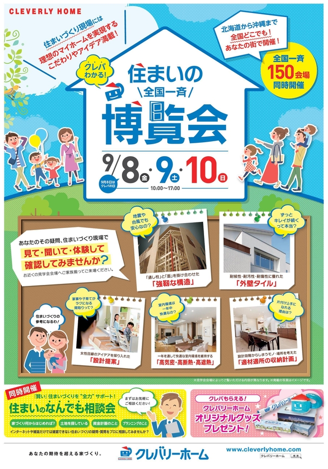 9月8日(金)・9日(土)・10日(月)、 全国150会場の住まいづくり現場で同時開催! クレバリーホームの住まいづくりへのこだわりを体感できる3日間 『クレバわかる 住まいの全国一斉博覧会』開催!