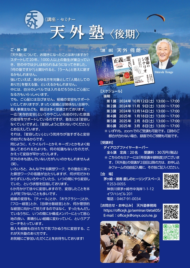1,000人以上の塾生が受講したあなたの人生を変えるセミナー、 「天外塾2024後期」を10月12日より開講! ~意識の深い変容と共に新たな自分に出会う~