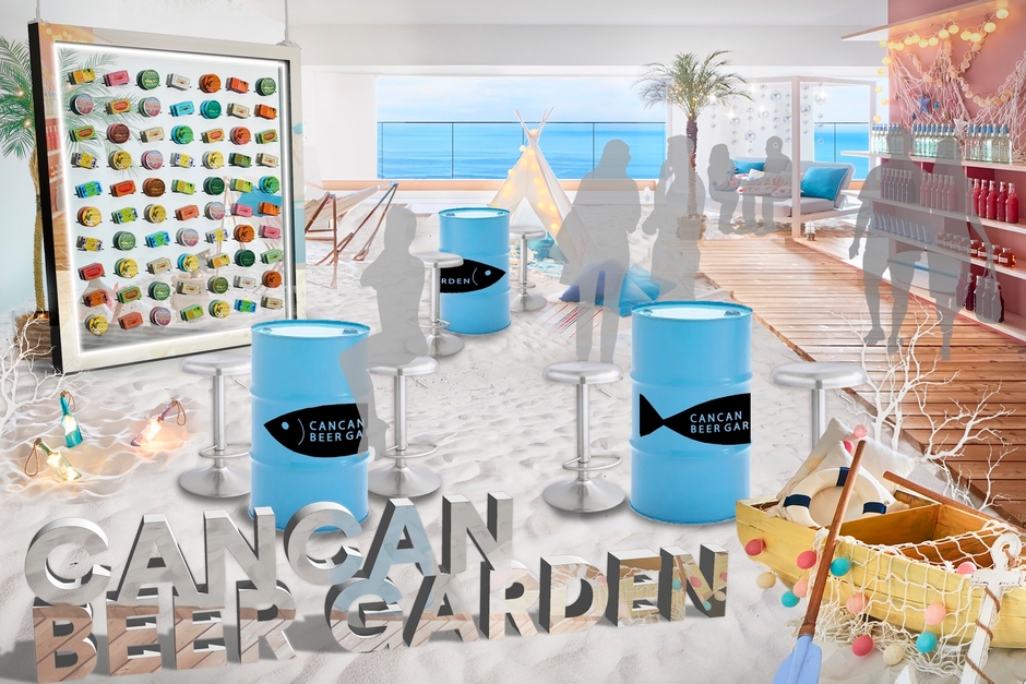 熱海の絶景と温泉に浸るリゾートホテル「星野リゾート リゾナーレ熱海」では、2019年6月1日~9月1日の期間、ホテル最上階の「ソラノビーチBooks&Cafe」にて、「カンカンビアガーデン」を開催します。缶詰の生産が盛んである静岡で、100種類から選べる缶詰とビールを一緒に楽しめるビアガーデンです。窓の奥に広がる熱海の街と海を眺めながら、涼しく快適な屋内のビーチで過ごすことができます。