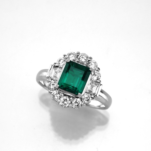 写真はエメラルドノンエンハンスメントのプラチナリング